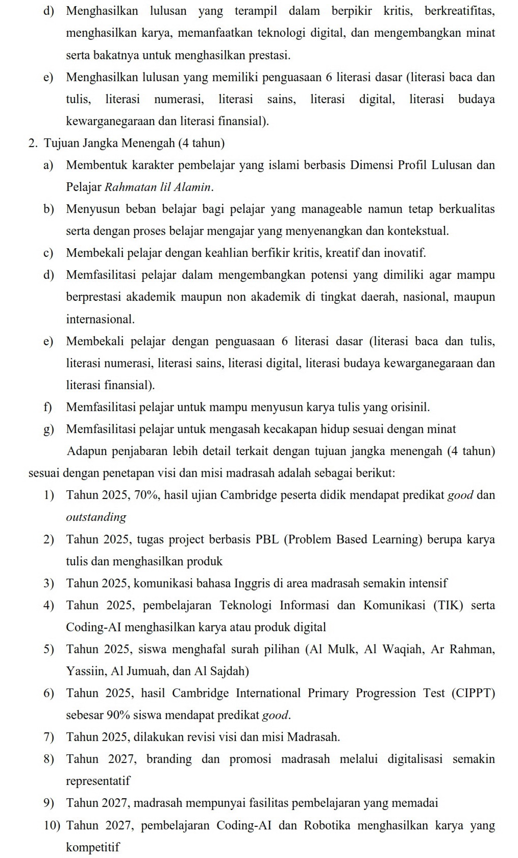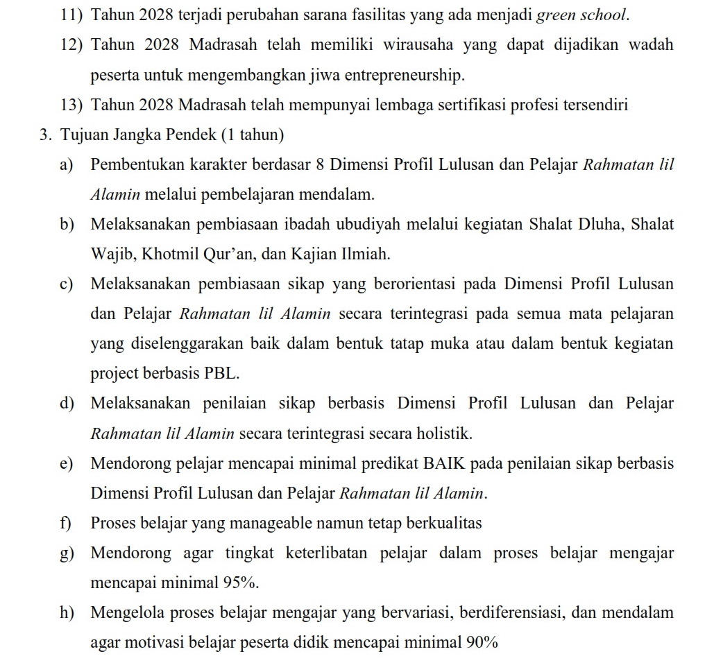 VISI, MISI DAN TUJUAN MADRASAH